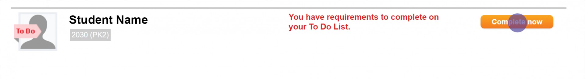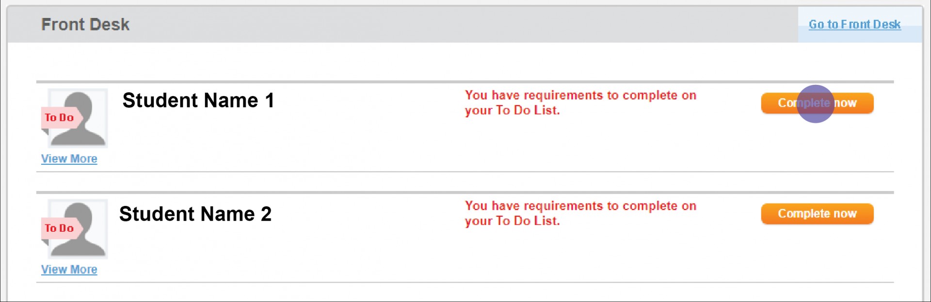 - For each new student, click 'Complete Now'