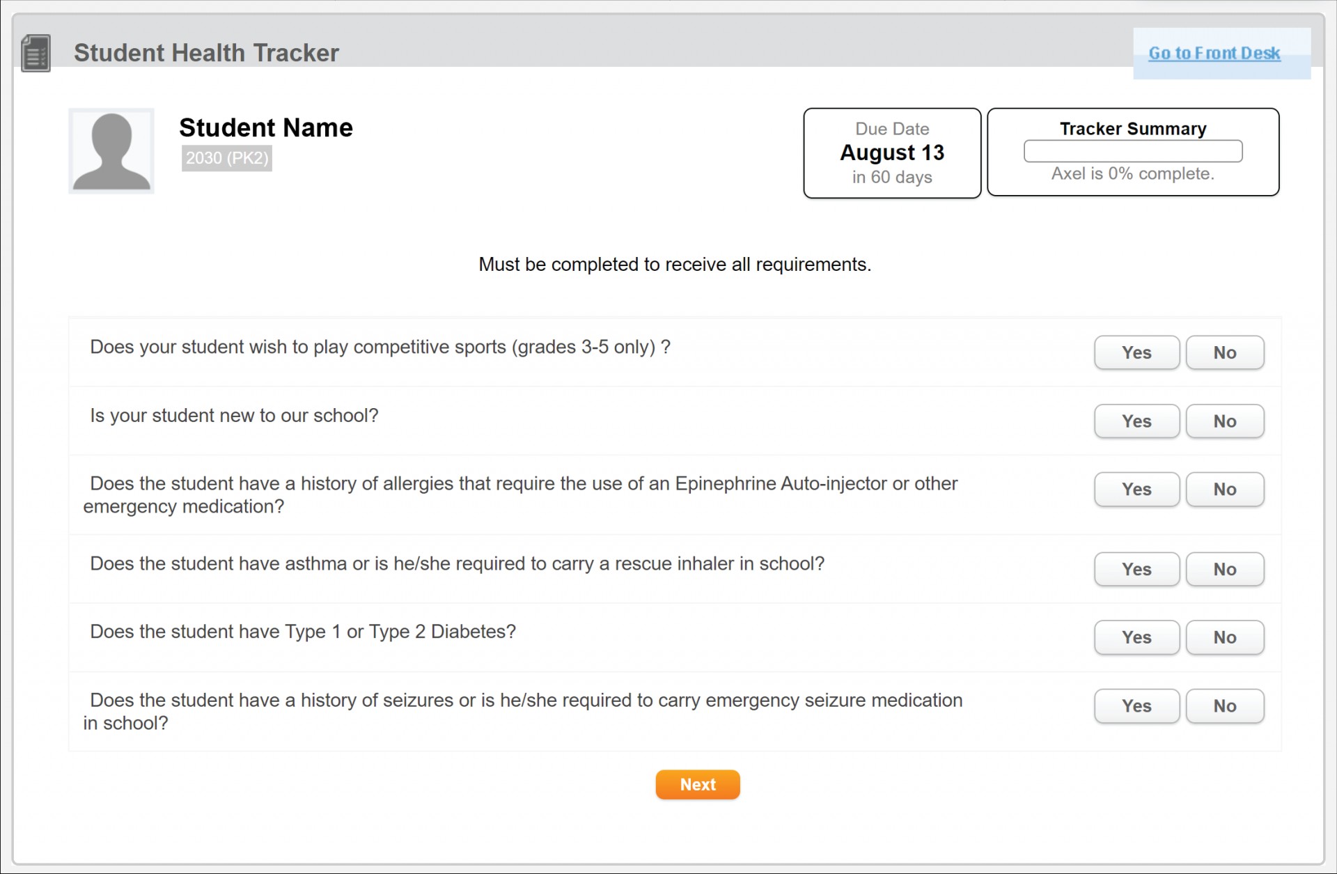 - Answer the questions on each screen and click 'Next'.
